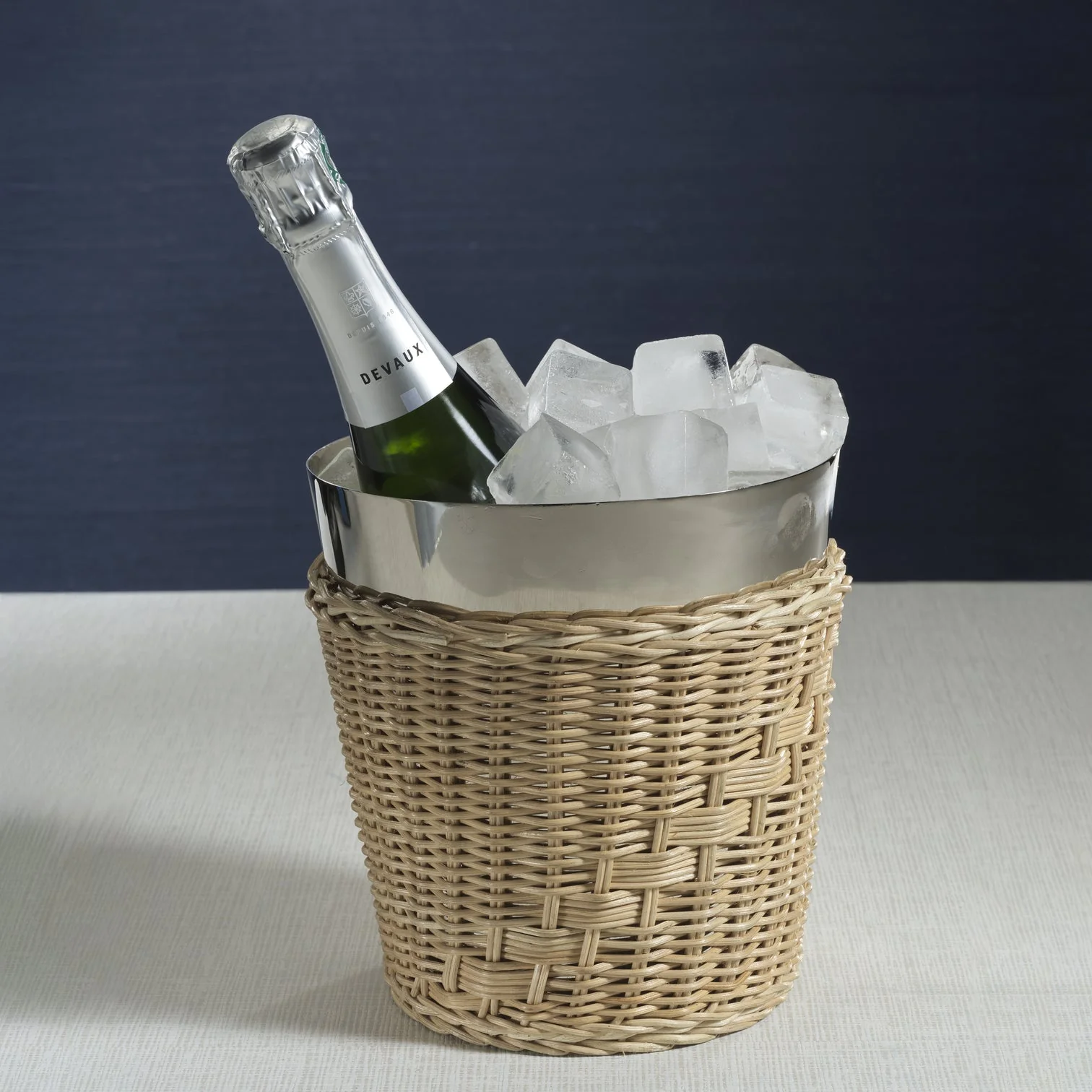 Elevate your entertaining with The Palmier Ice Bucket with Lid, expertly crafted from woven rattan and stainless steel. This elegant piece combines natural texture with sleek durability, keeping ice chilled while adding a refined touch to your gatherings. Its stylish design and practical lid ensure both functionality and sophistication for any occasion.